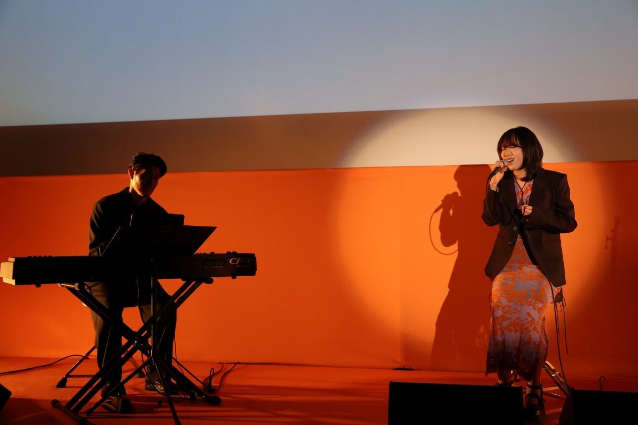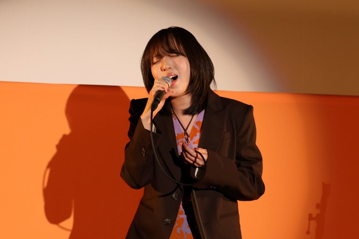 そしてキーボードの演奏に乗せ、「楓」を生披露。透き通るような声質の中に、芯の強さを感じさせるような歌声で歌いあげると、ステージ前方に座った登壇者たちをはじめ、会場の観客もしみじみと耳を傾けていました。